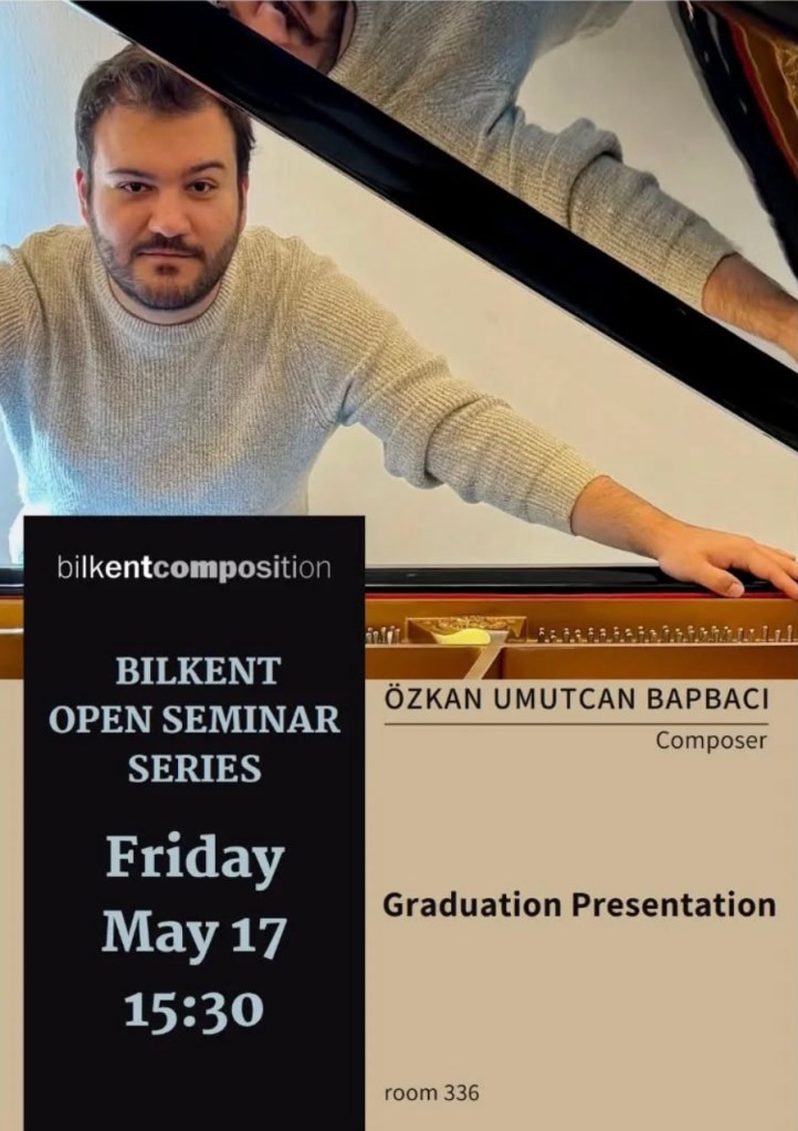 As part of Bilkent Composition Seminars and Composition curriculum of Bilkent University Faculty of Music and Performing Arts, a graduation seminar is given through which reflections on the compositional output and process is shared.
